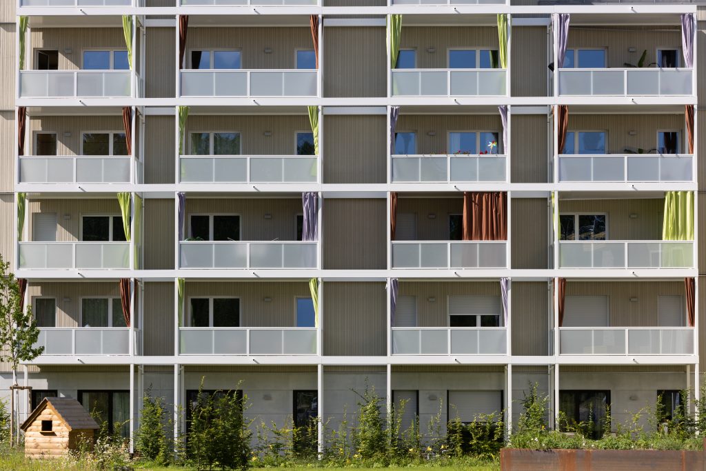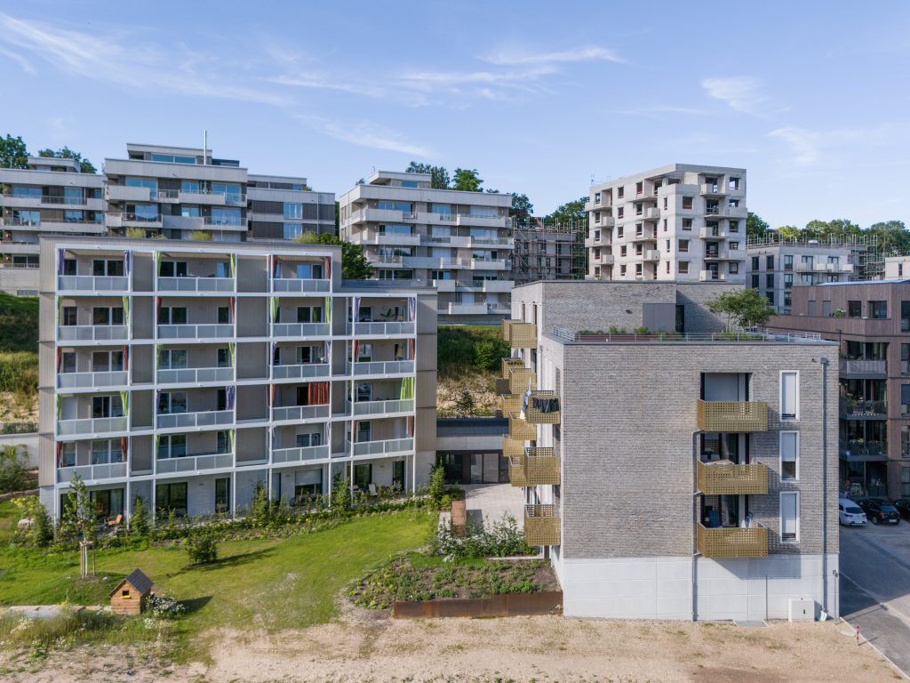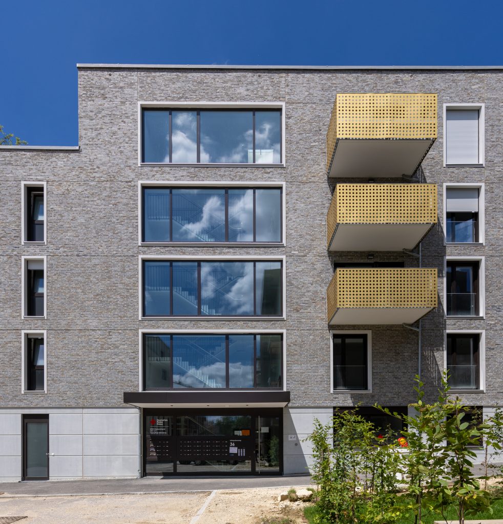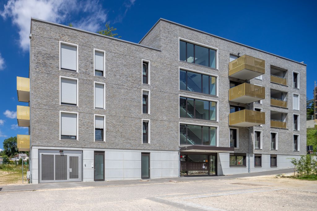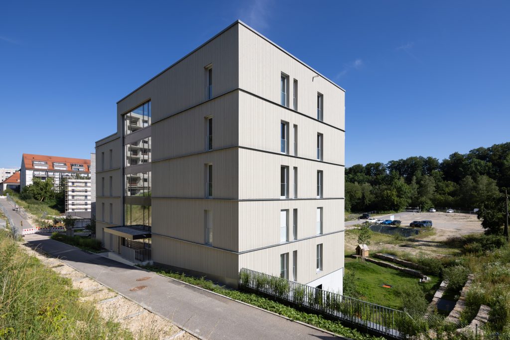 Im Leimgrubenweg 38 sind 20 freifinanzierte Wohnungen entstanden. Das Gebäude wurde in Holzsystembauweise errichtet. Die 2-, 3- und 4-Zimmer-Wohnungen sind 50 bis 110 m² groß.