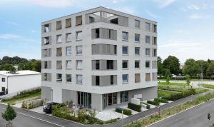 In der Schweidnitzallee in Biberach haben wir ein Gebäude mit 24 Wohneinheiten und einer Bäckerei mit 35 Tiefgaragenstellplätzen und 4 Außenstellplätzen gebaut.